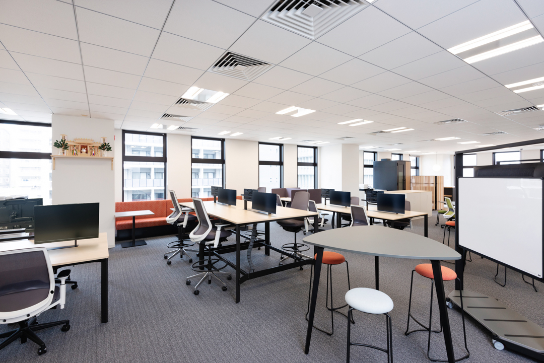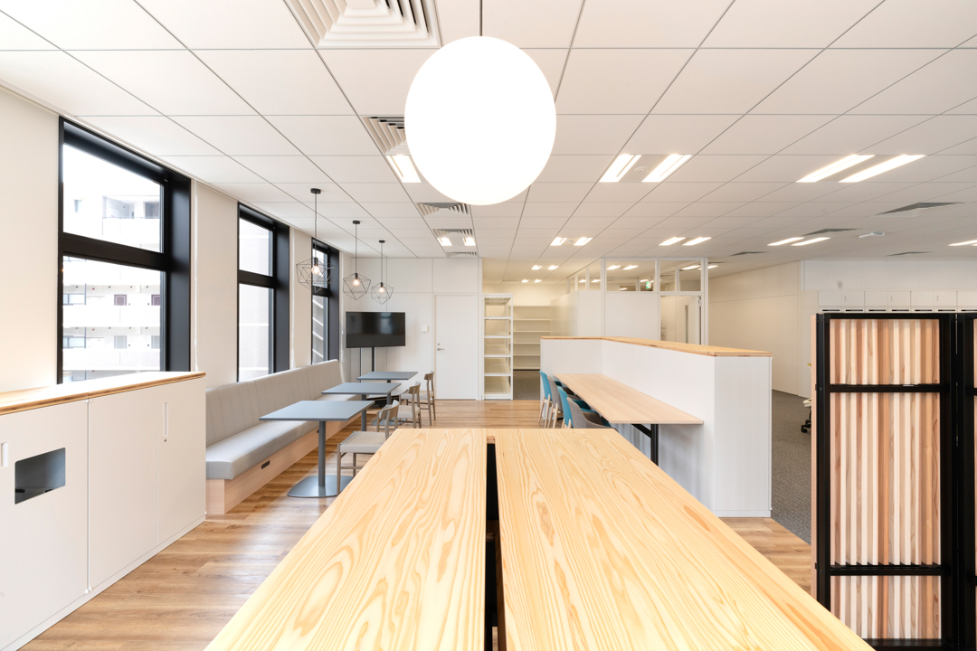 部門を越えたコミュニケーションを促進するオープンなレイアウトに加え、Web会議対応の会議室を随所に配置。明るく開放的な空間が、社員の創造力と交流を引き出します。セキュリティ面にも配慮した安心・安全な執務環境で、働く人の満足度と業務効率を最大化する設計を目指しました。 竣工2025年