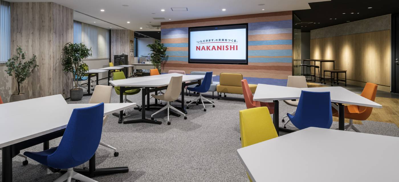 フロア中央の会議室を境に、ワークスペースとキッチンスペースの2エリアを構築した。ワークスペースでは可動式のチェアでフレキシブルにレイアウトを変えることができる。キッチンスペースでは実際に調理器具に触れたり、調理したものを食べたりすることができる。 【設計:ウチダシステムズ / 施工:オカムラ】 竣工2024年